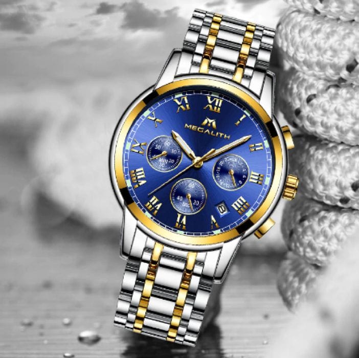 Megalith 0060M is luxury style wrist watch with working chronograph and date function. This watch comes with 3ATM water resistance rating. You can use it while washing hands or in rain but you cannot wear it while swimming or using hot water. It has luminous points on index, illumination is not strong and wears out very quickly. Case is made of alloy, however with my use I have not witnessed any color damage. It features Quartz SPE90 movement that is accurate with few seconds differential in a month from actual time. It is 40mm wide and 12mm thick. This watch is perfect for business, casual events or daily use.